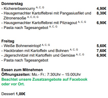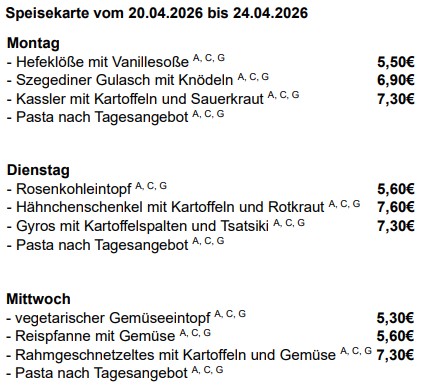 Speisekarte vom 20.04.2026 bis 24.04.2026